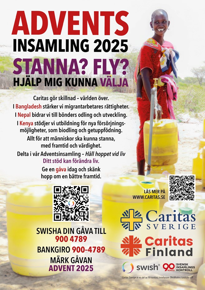 Adventsinsamlingen anordnas i år gemensamt av Caritas Sverige och Caritas Finland. Läs gärna biskop Anders och biskop Raimo Goyarrolas gemensamma brev om detta här.