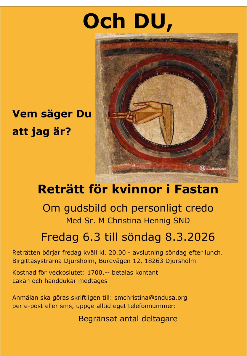 Reträtt hos Birgittasystrarna i Djursholm 6-8 mars