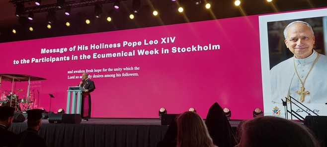 Ärkebiskop Pace medverkar i flera programpunkter och läste bland annat upp en hälsning från påve Leo XIV idag under det ekumeniska firandet i Filadelfiakyrkan. Påvens hälsning finns här. Ärkebiskopen knöt an till Ekumeniska årets och veckans tema "Tid för Guds fred" och påminde om påvens uppmaning om fasta och bön för fred nu på onsdag den 27 augusti.