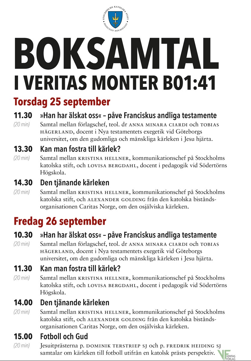 Nu är det åter dags för Bokmässan i Göteborg! Bokmässan är Nordens största kulturevenemang med över 80 000 besök och 800 utställare. En av utställarna är katolska kyrkan i Sverige som i Veritas förlags och Katolsk Bokhandels monter B01:41 presenterar nya böcker till kampanjpriser.